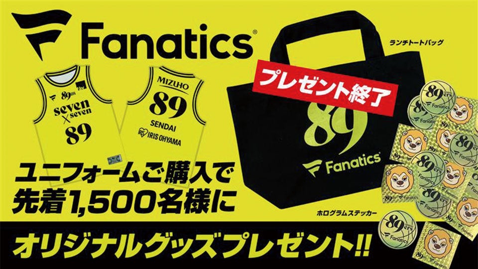 10/4(土)からアリーナと仙台89ERS公式オンラインショップで、オーセンティックユニフォーム、レプリカユニフォームをご購入の方先着500名様にオリジナルミニランチトートをプレゼント!