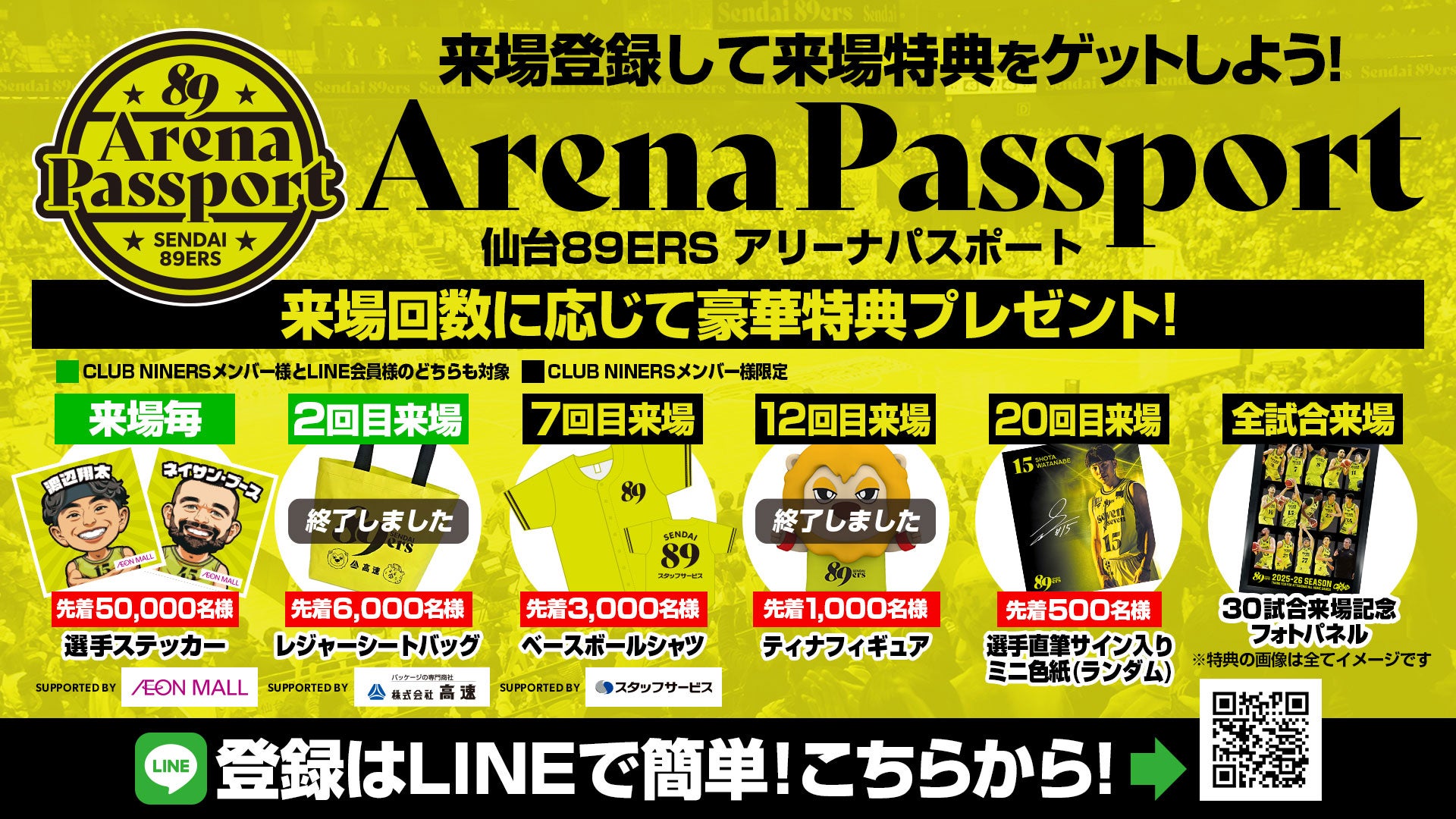 来場スタンプ数に応じて豪華来場特典をプレゼントする「アリーナパスポート」!