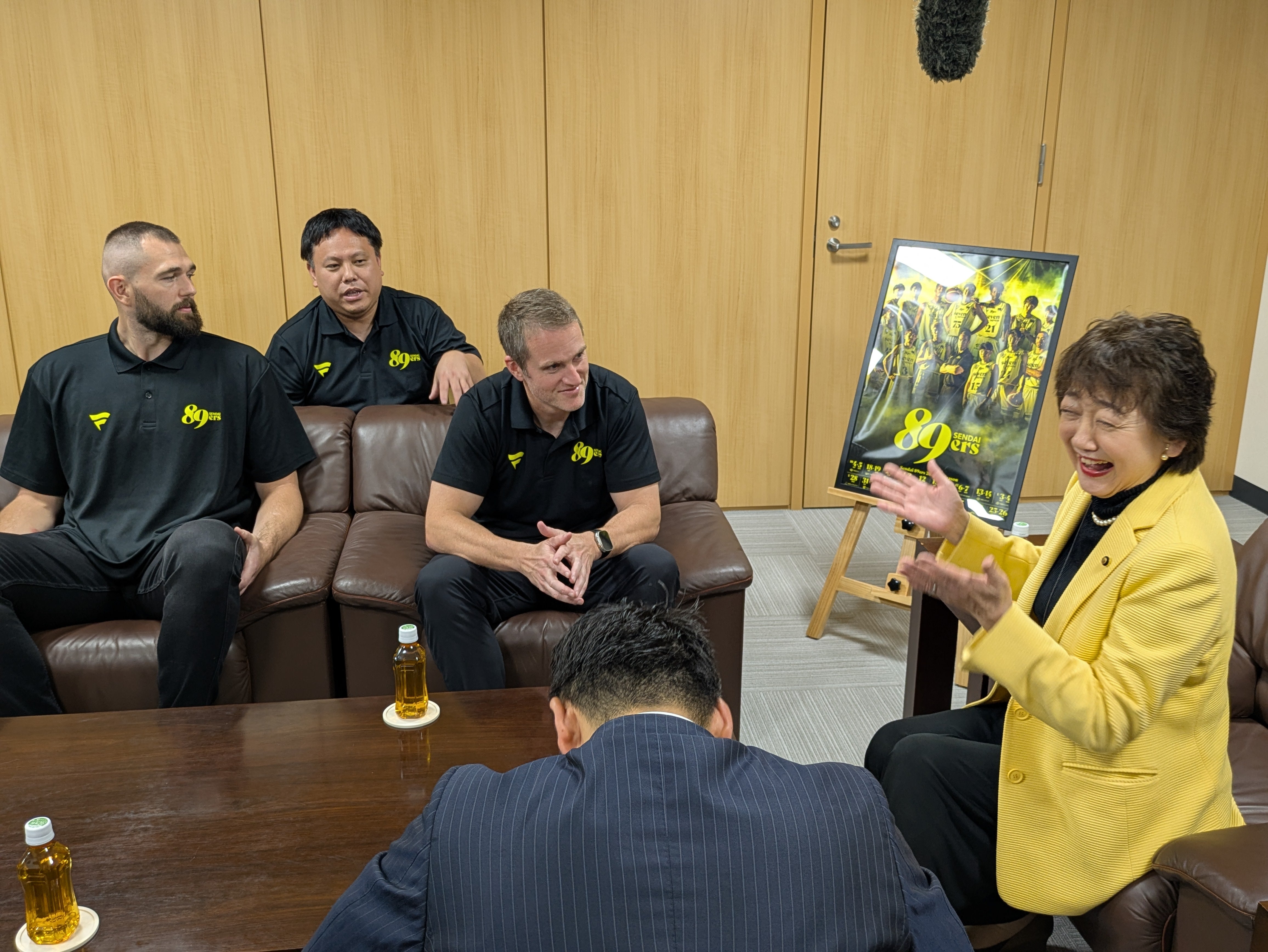 郡市長には「仙台だけじゃなくて、他の自治体のみなさんも、みんなファンですからね。このまちに仙台89ERSのみなさまのようなプロのチームがあるということが私たちの誇りでもあるし、街の活性化につながっています。ぜひ、勝ちを重ねていっていただければと思います」と仰っていただきました。