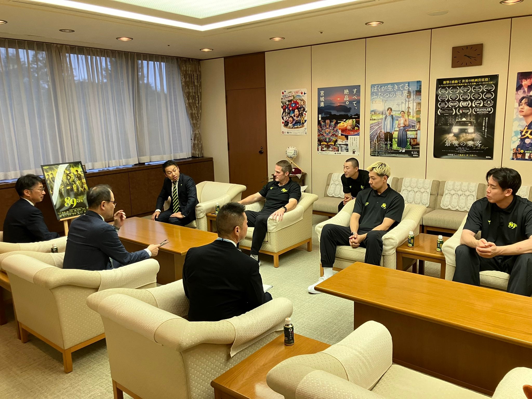 伊藤副知事への訪問では、伊藤副知事から「Bプレミア前の最終シーズンですから、ぜひ素晴らしい成績で勢いづいていただきたい」と激励のお言葉をいただき、それを受け、志村社長は「大きい目標はチャンピオンシップ。26チーム中8チームのみが進出できる舞台を目指し、チャレンジしていきます」と今シーズンの決意を表明いたしました。