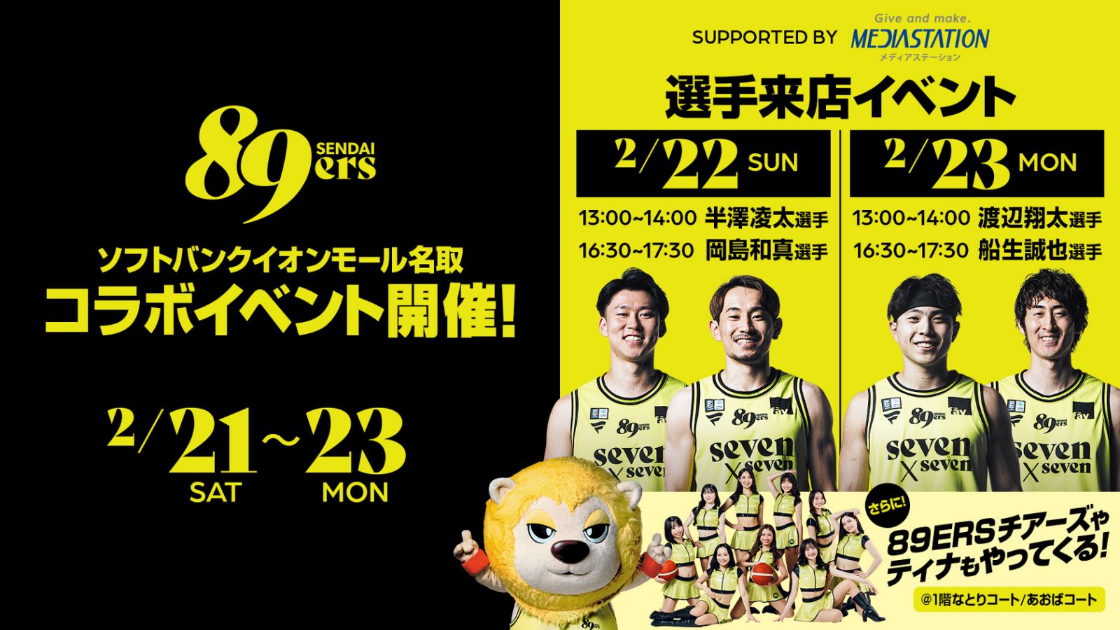2月22日(日)と23日(月・祝)には、選手が仙台89ERSグッズショップイオンモール名取店に来店!