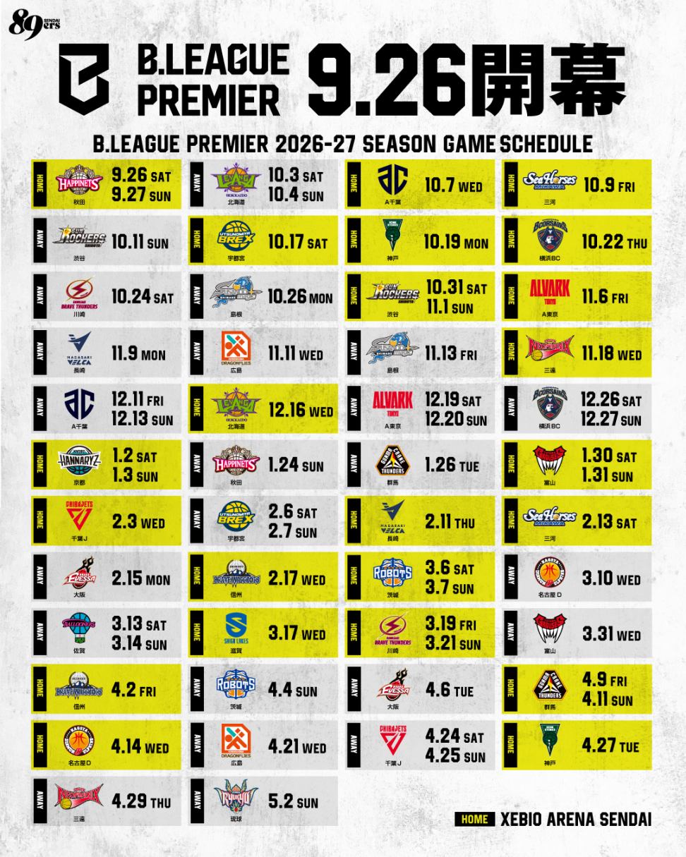 トップカテゴリー「Bプレミア」初年度となる2026-27シーズンは、2026年9月26日(土)に仙台開幕。