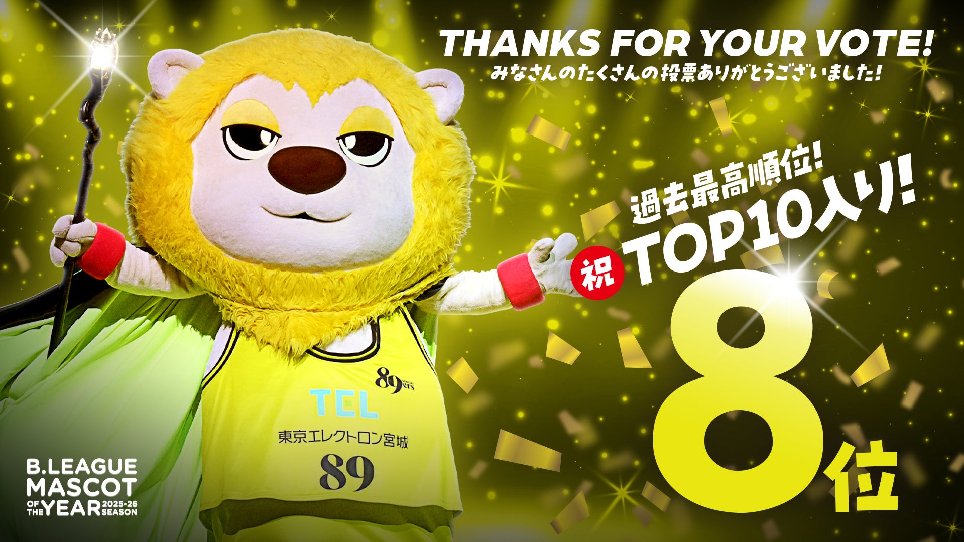 「Bリーグ MASCOT OF THE YEAR 2025-26」 ティナは過去最高の8位!