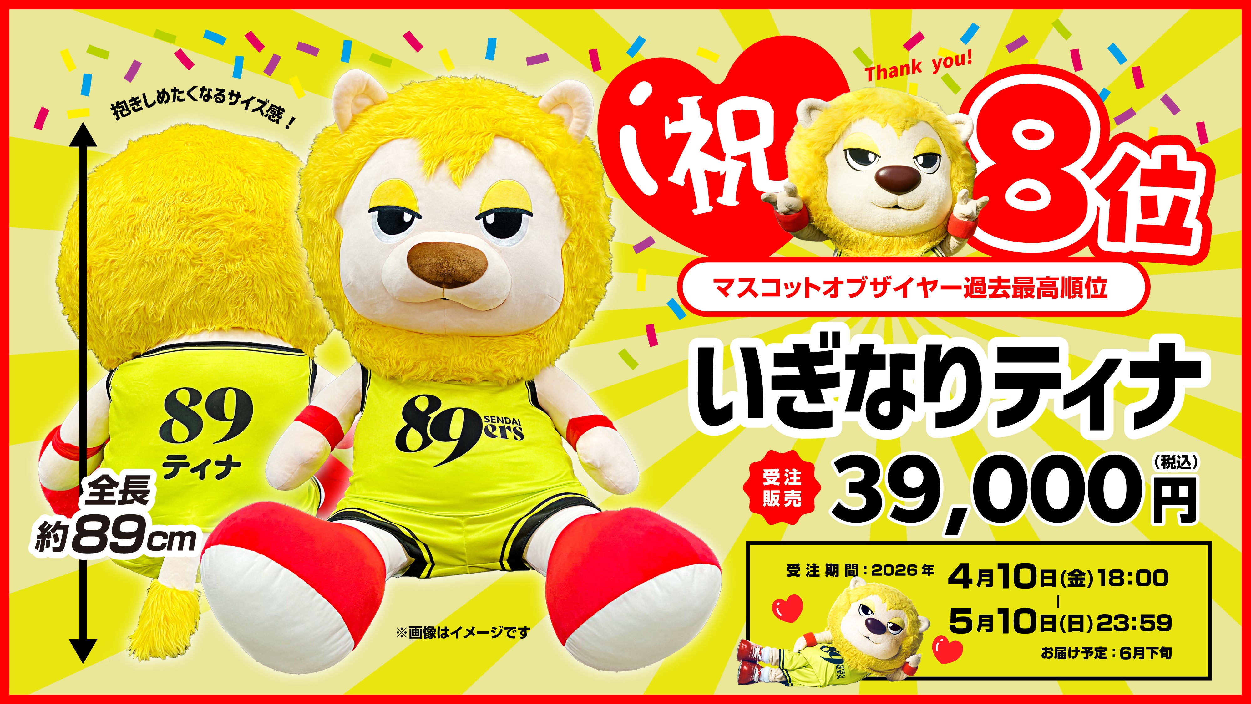 ティナの健闘を称え、ティナの特大ぬいぐるみ、その名も『いぎなりティナ』の発売が決定!