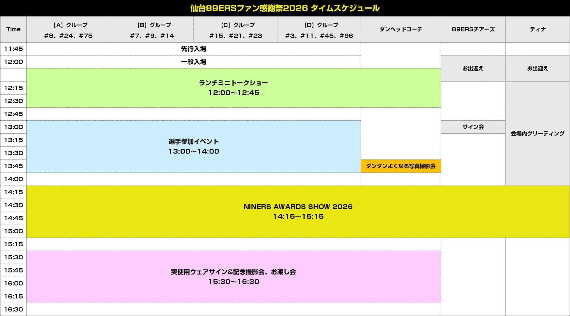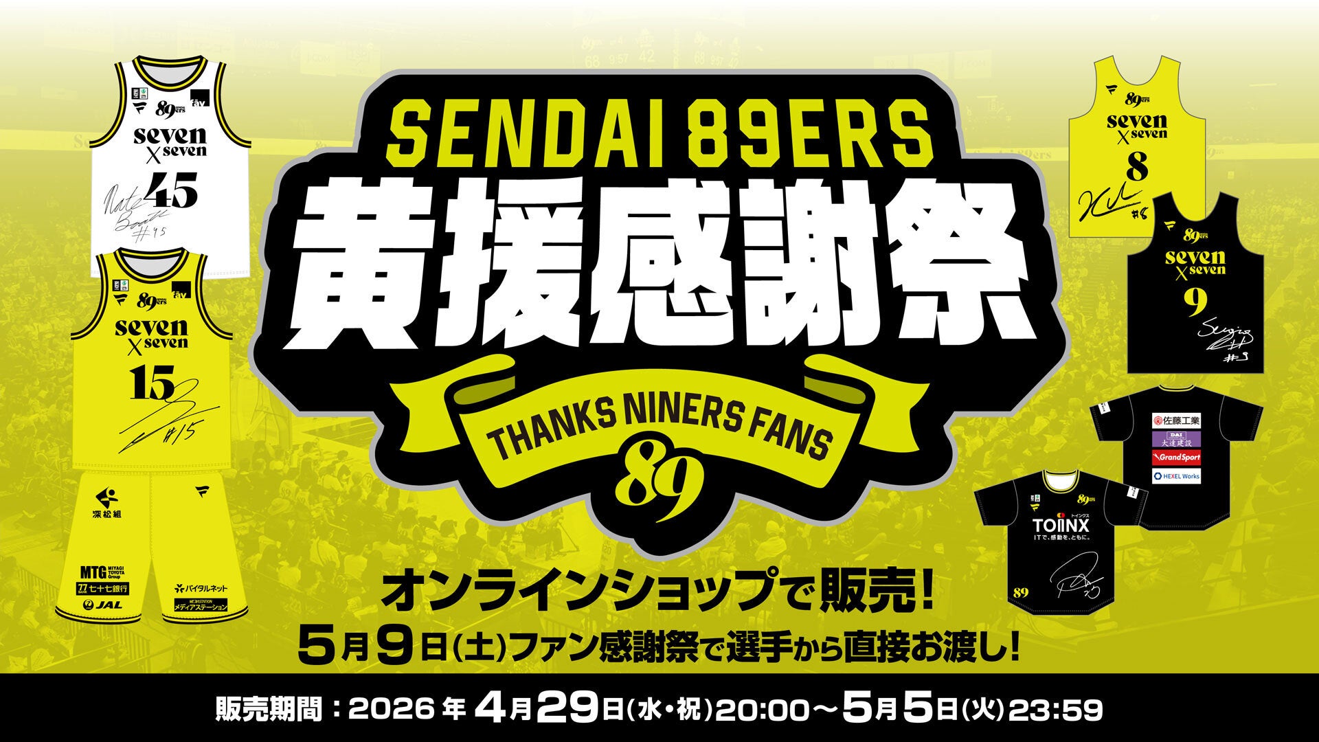 今シーズンどんな時も熱い黄援で後押しをいただいたみなさまに感謝の気持ちを込めて5月9日(土)に「仙台89ERSファン感謝祭2026」を開催いたします!