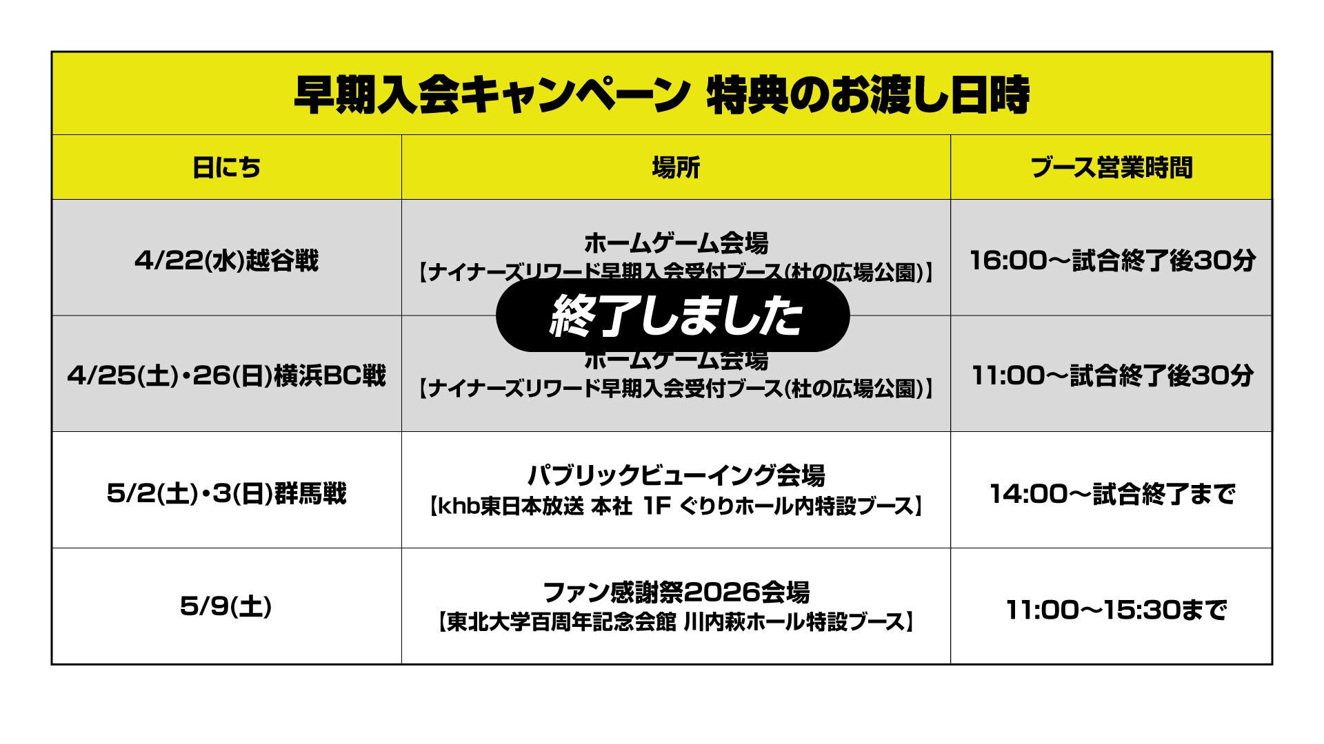 2026ー27シーズンから開始する新会員サービス「ナイナーズリワード」と「ナイナーズキッズクラブ」の早期入会キャンペーンを開催中!