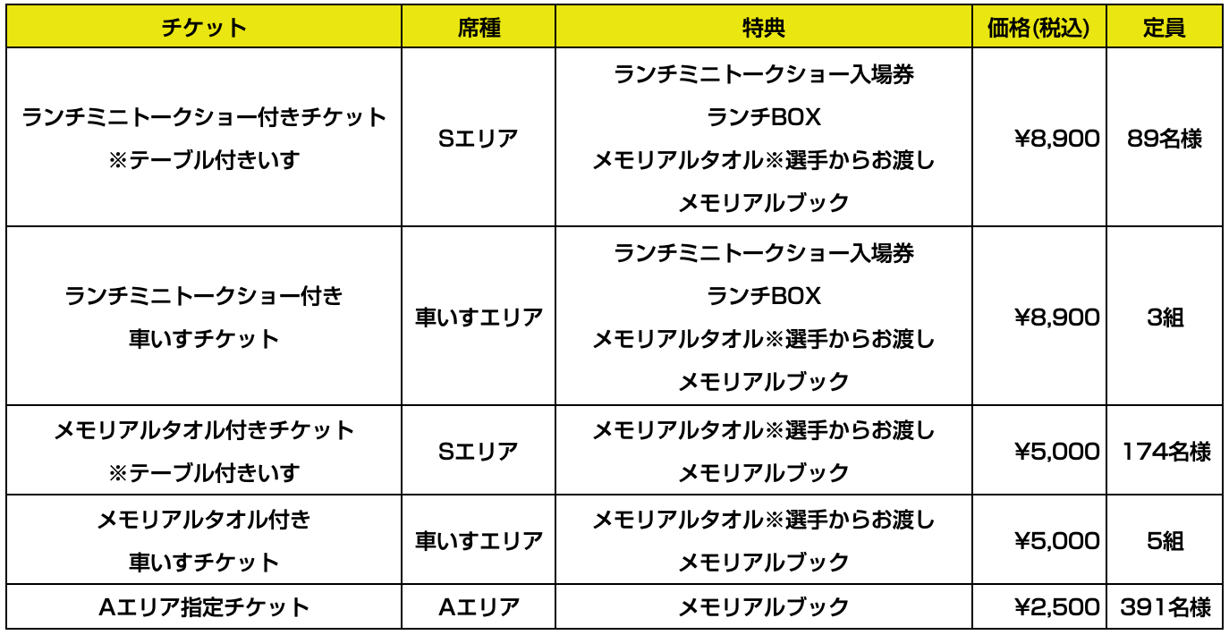 ※選手から直接商品をお受け取りになるには、ファン感謝祭当日のチケットが必要です