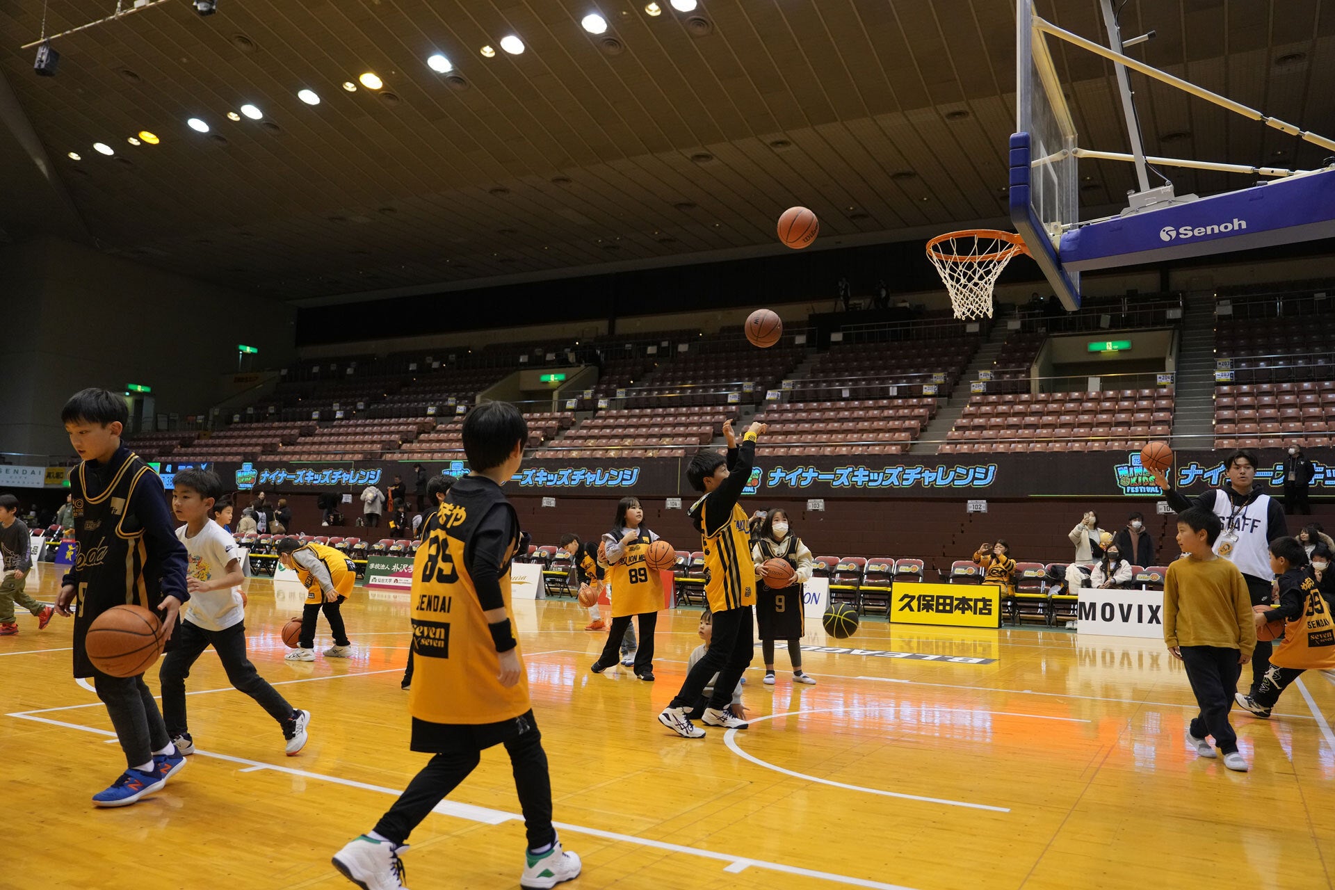 試合終了後は選手が熱い試合を繰り広げたコートでバスケができる「キッズコート開放」も!