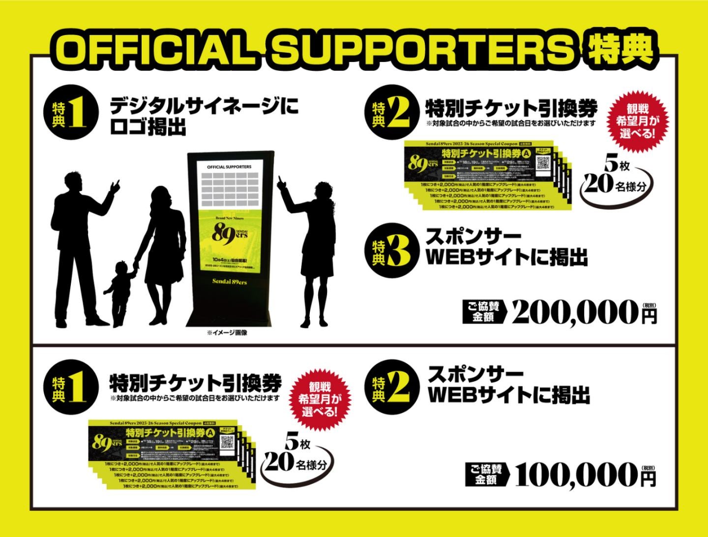 オフィシャルサポーター・黄援協賛は、様々な特典がセットになったお得なご協賛パッケージです。